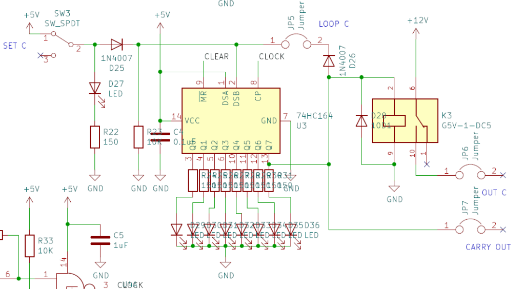 The PDF of the circuit diagram is available below. This is the prototype version created as a test build, featuring a design that places slightly excessive strain on the shift register’s output.